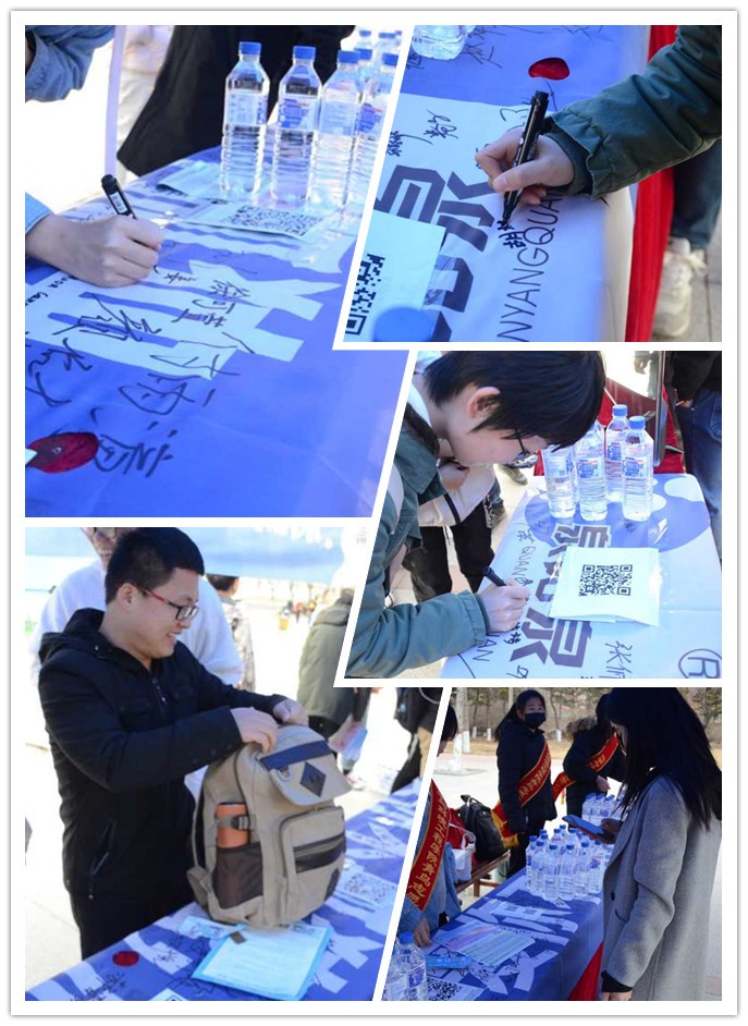 志愿者們通過(guò)科普宣傳的方式告知同學(xué)們關(guān)愛自閉癥兒童的重要性。同學(xué)們積極參與到義賣當(dāng)中,用自己的實(shí)際行動(dòng)親身參與到慈善活動(dòng)當(dāng)中,并在條幅上簽下自己的名字,留下自己獻(xiàn)出愛心的印記。