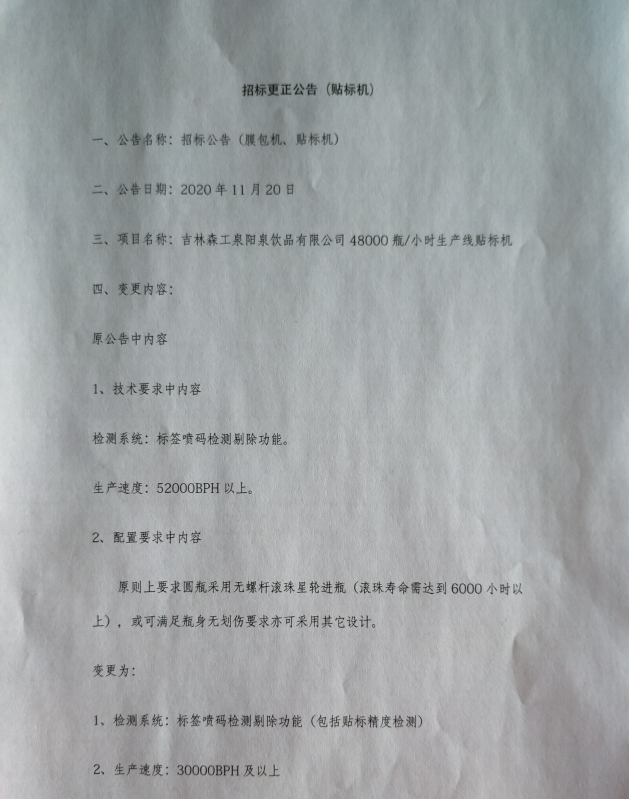 招標(biāo)公告(膜包機、貼標(biāo)機)